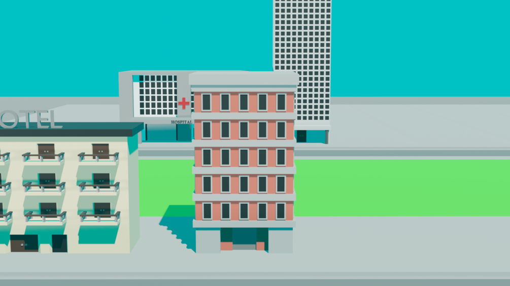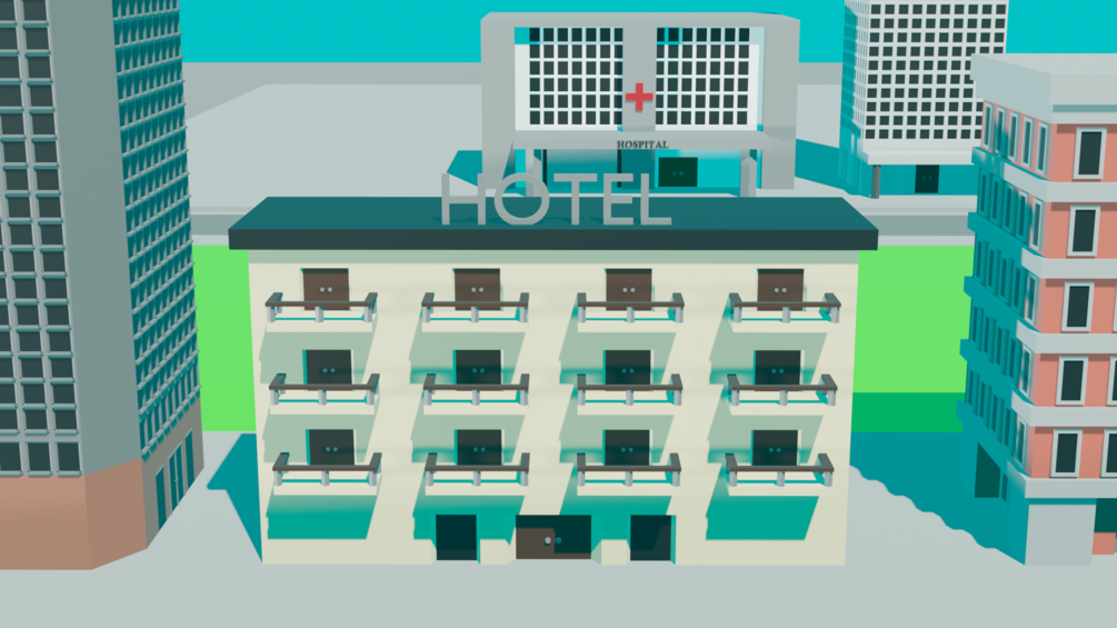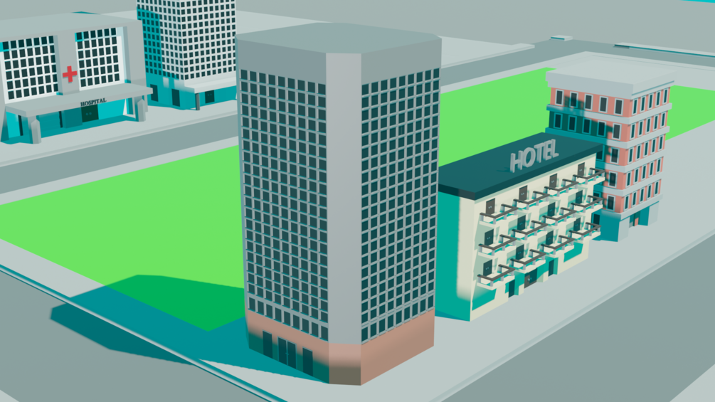 Object types: Hotel, office (2), hospital, appartment, road (4)