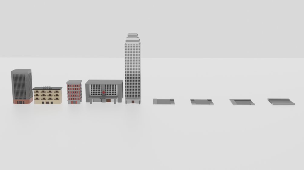 This asset includes Low Poly Buildings. You can see the objects that are included in the picture above here.
